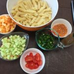 When I was growing up my grandmother used to make a pasta salad with Italian dressing and a spice that you can easily find in many American grocery stores. It is a spice mix called Salad Supreme. It’s an easy salad and you can customize it with the veggies that you like. That’s the beauty of this salad. My husband doesn’t like tomatoes so I just add them to my bowl. I’m not a big fan of celery so I leave it out and add it to his bowl. If you have favorite veggies you can add as many or few as you like. Now that I’m not in the U.S. I can’t find this particular spice mix but sometimes I’m feeling nostalgic and I still want the pasta salad my grandma used to make. Certain foods just remind me of special times and over the years turn into comfort foods. I like to share these foods with my family. Even though I can’t find the spice, I can find Italian dressing and some of the spices that are in the mix. I have learned to make what I can with what I have to satisfy this particular craving.
