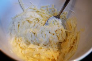 - (100 total grams freshly shredded parmesan romano – split) 60 grams parmesan romano (about 2.10 oz) / later another 40 grams parmesan romano (about 1.4 oz)
