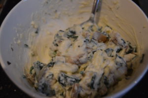 - Chop the cooked mushroom and spinach finely and stir these into the cheese mixture.