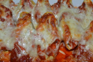 - Cook the shells according to the package directions. Try to cook them al dente. If the package states 10-12 minutes then go for the 10 minutes. They will continue to soften some in the oven with the cheese and sauce. It will be hard to fill them if they are too soft or overcooked. I used around 180 grams of pasta. Pasta shells come in all different sizes. Mine were around 8-9 grams per shell and this recipe made 20 stuffed shells. If you are using bigger or smaller shells, the yield will vary some.