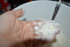 • In a large bowl stir together flour, salt, and baking powder.
