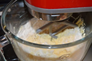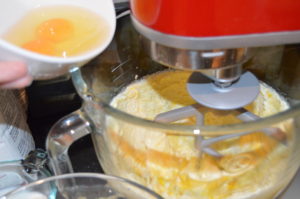 - Add in the eggs one at a time, scraping the bowl as necessary.