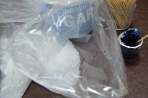 Quick tip: You can make your own sanding sugar in the colors and amounts you need. I don’t like to buy and store every color of sanding sugar. I buy one large white sanding sugar and then add a little gel color to a small amount of it for whatever project I am working on. It is easy to make yourself. All you need to do is add a little sanding sugar to small plastic bag. I use a sandwich bags. Next, add a small amount of gel food color to the sugar. The easiest way is to dip the end of a toothpick into your gel color and then scrape the color into the sugar. You only need a little. Next, close the bag and rub the gel into the sugar. You can make the colors as you need them.