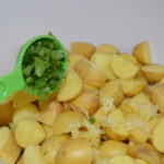 Roughly chop a small handful of parsley. You’ll want 2 tbsp once it is chopped. Add it to the potatoes.