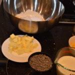 Cut 4 oz of cold butter into chunks and put it into freezer to keep very cold –only for about 5 minutes.