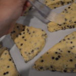 Whisk together 1 egg with a tbsp of cool water. Brush the egg wash over each scone. (You will not use all the wash – you just want a thin coat on each scone.)