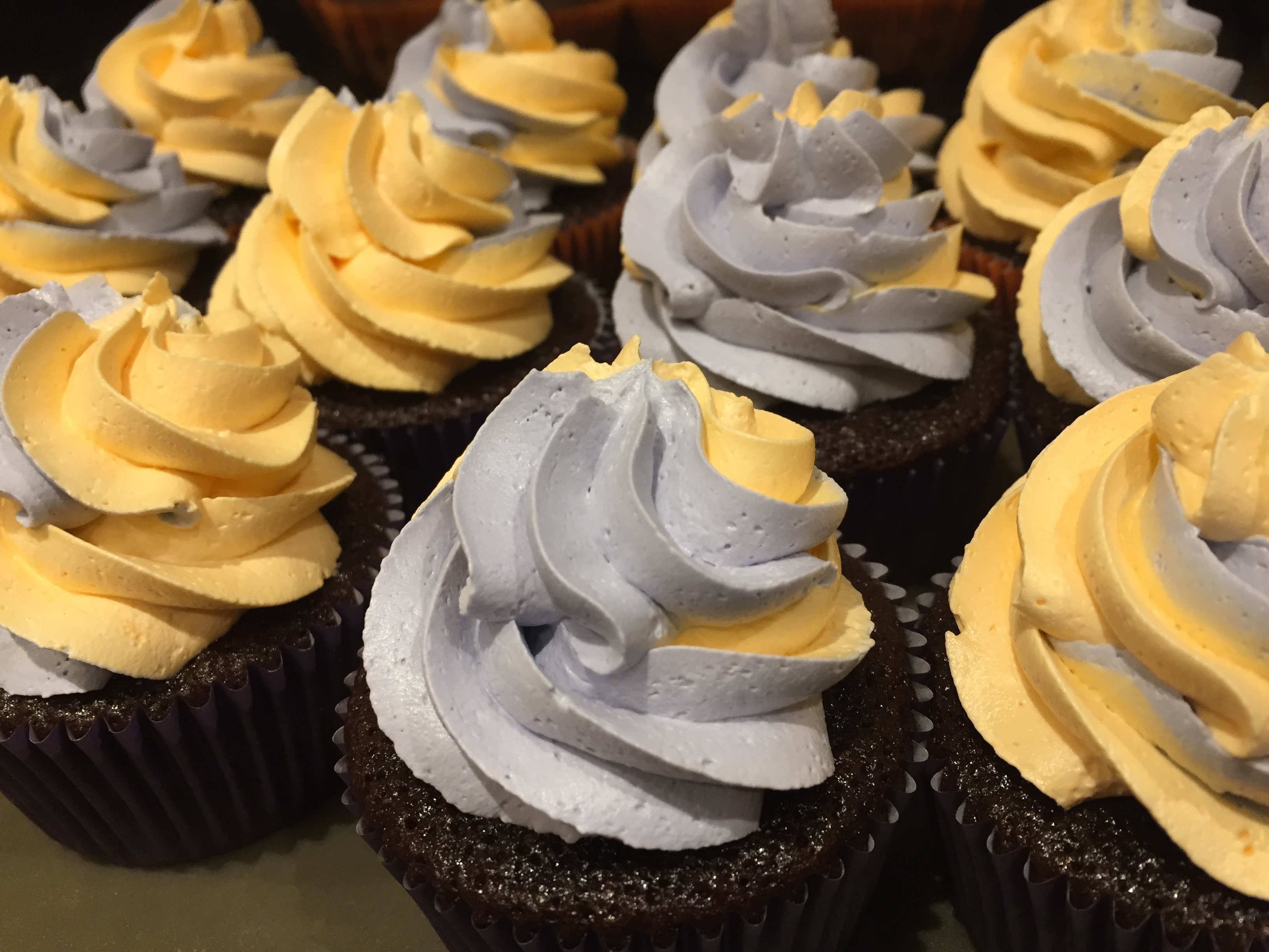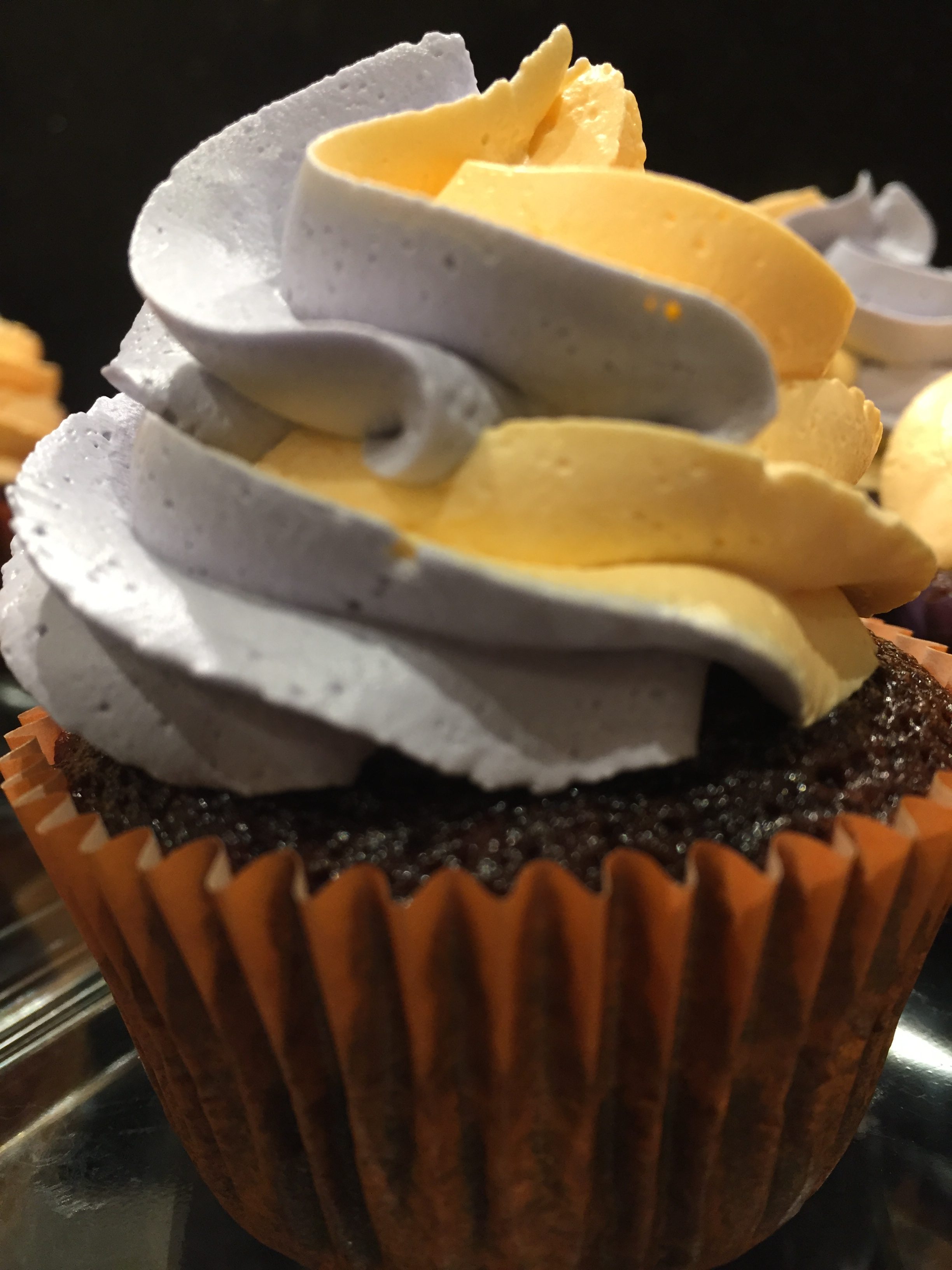 It was now time for two toned swirled cupcakes! For Halloween I went with orange and purple which were also the colors I chose for the cupcake liners. Beautiful and Delicious!