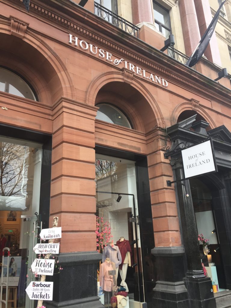 This is another shop that sells a little of everything from different parts of Ireland. House of Ireland is also on Grafton St. I have found that it is best for our family budget if I don’t visit too often. They have a selection of crystal, men and women’s clothing, knitwear, handbags and some unique and lovely jewelry.