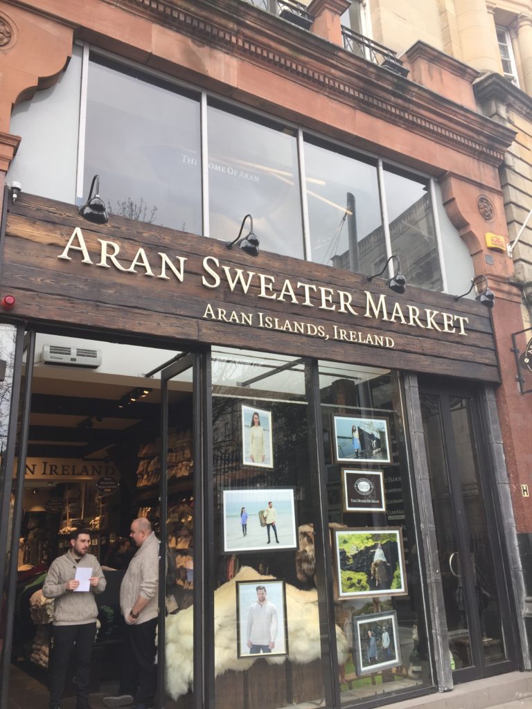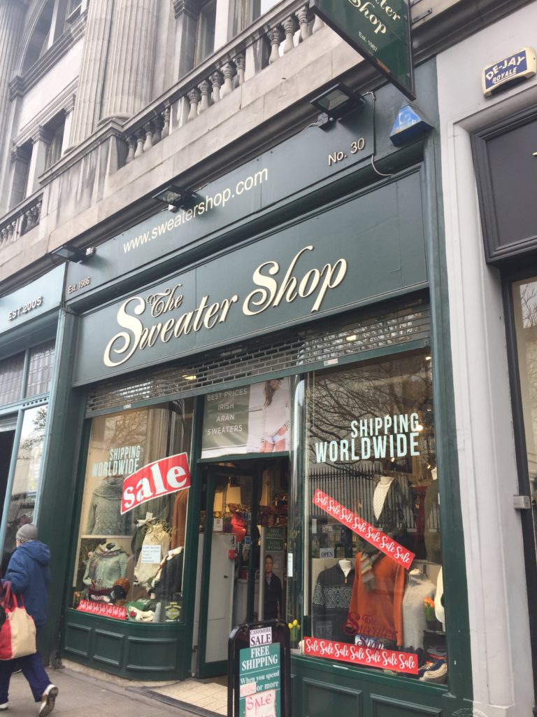 The Sweater Shop is also not too far from the famous Grafton St. It is on Nassau St. just across from Trinity College. They have several locations in other cities throughout Ireland as well. They sell beautiful sweaters, as their name suggests, along with knit scarves, blankets and hats and gloves.