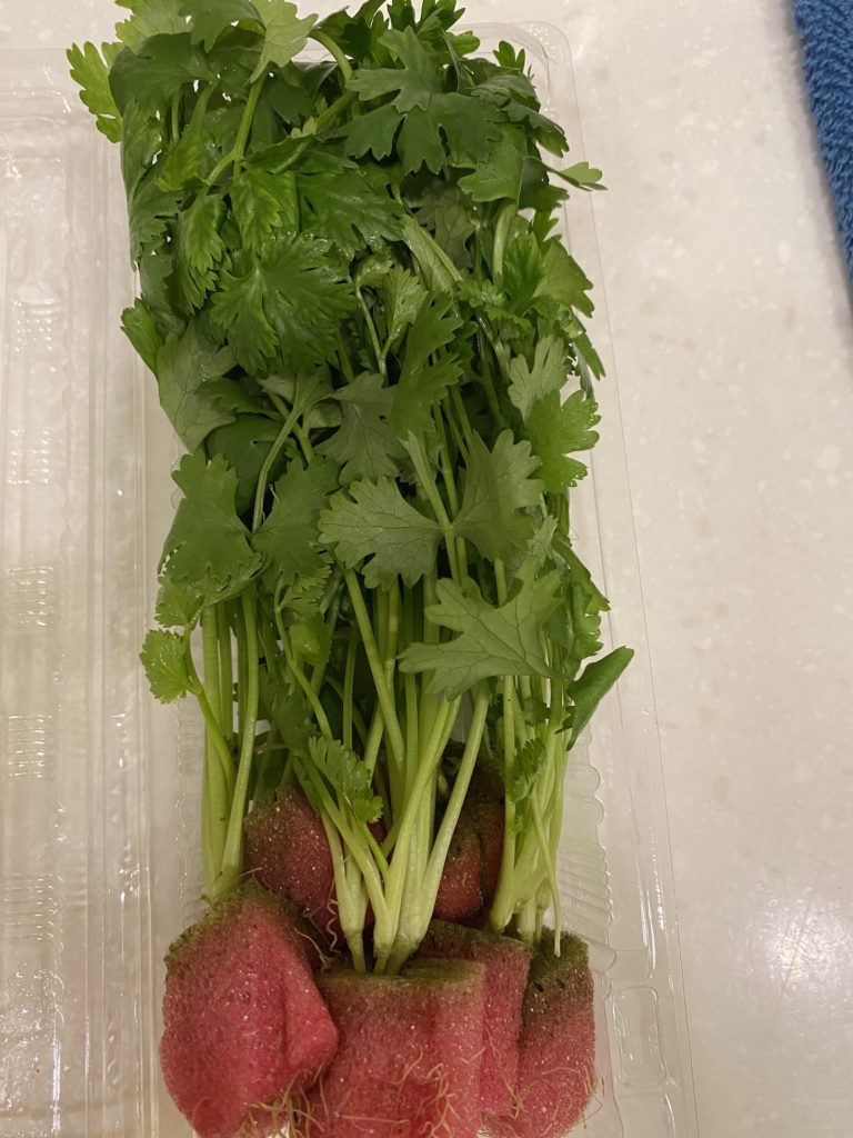 I am learning where I need to go for certain items and also trying to figure out what some of the fruits and vegetables are that I don’t recognize yet. It took a long time before I knew I could go to flower shops to find fresh herbs like basil and parsley. I had been checking the produce aisles of every single supermarket without much luck. I did find cilantro and happily bought some but that was it. The cilantro stalks were packaged with the stems in damp sponges to keep them fresh. I finally mentioned to someone that I couldn’t find fresh herbs and they gave me the much appreciated tip to go to the flower markets.