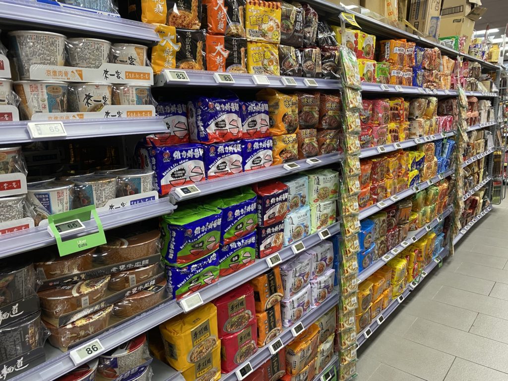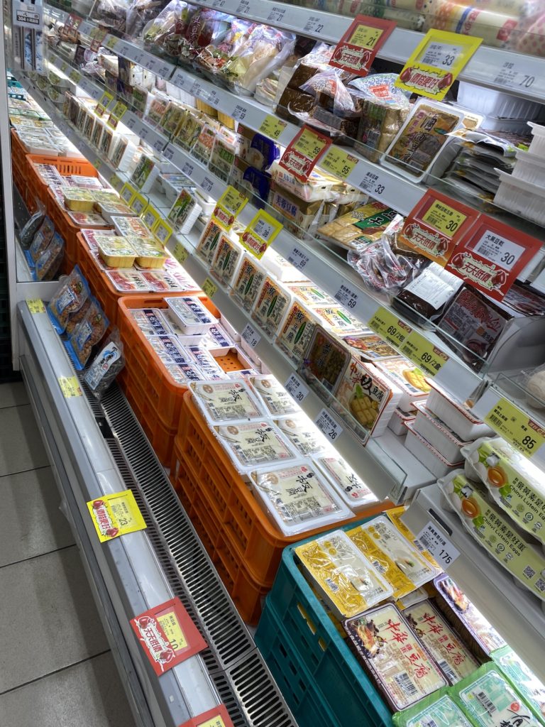 Another thing here that is new for me is the sheer amount of different types of rice, ramen and tofu. There are so many bags of rice to choose from that it can be a little overwhelming. Most are vacuum sealed flat and stacked on the shelves. The quality of rice is amazing! There are also aisles and aisles of different flavored ramen. The ramen packets here are fancier too. In the U.S. I’ve seen plenty of the ramen packs with ramen noodles and a small powdered flavor packet. Here, the ramen comes in a package that contains another package of oil and flavors, dried vegetables and sometimes meat packets or rice wine.
