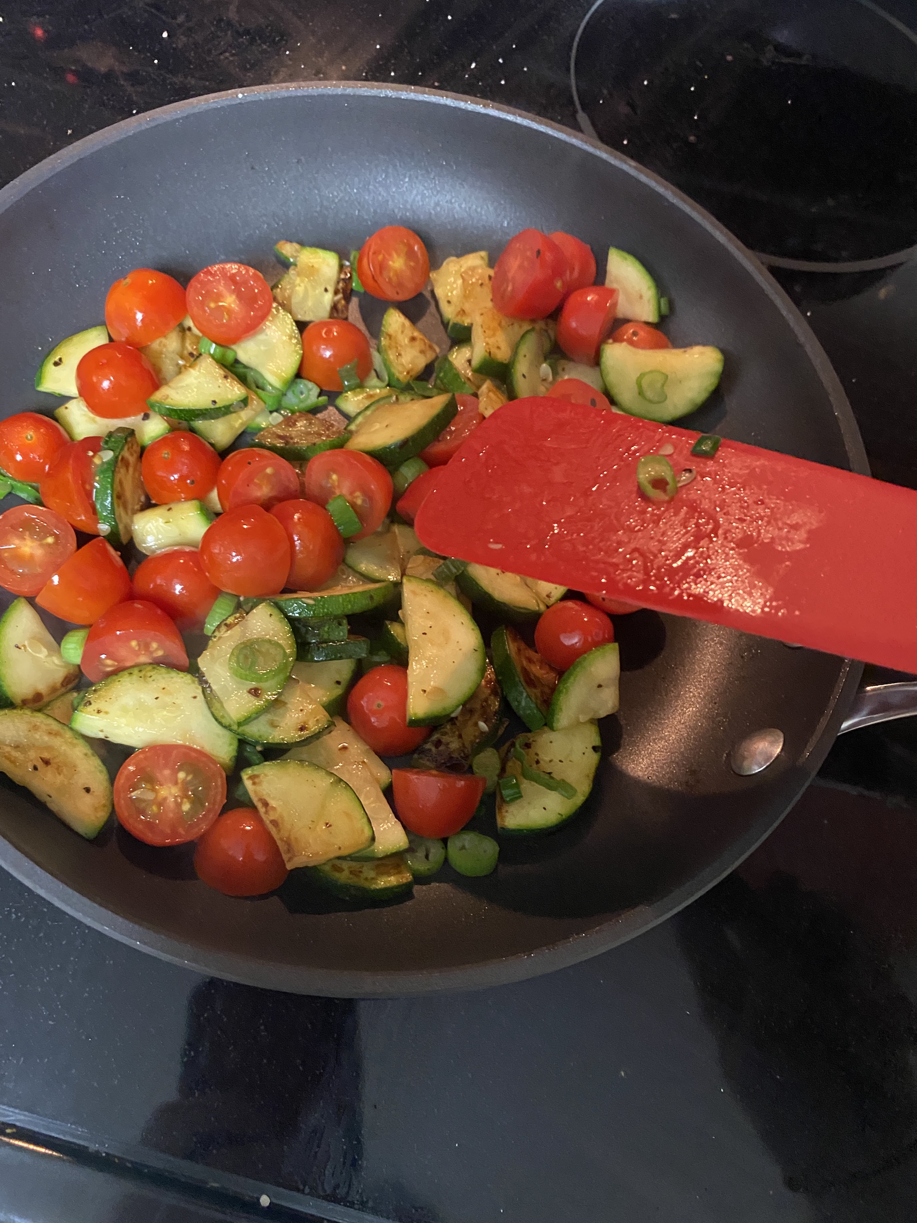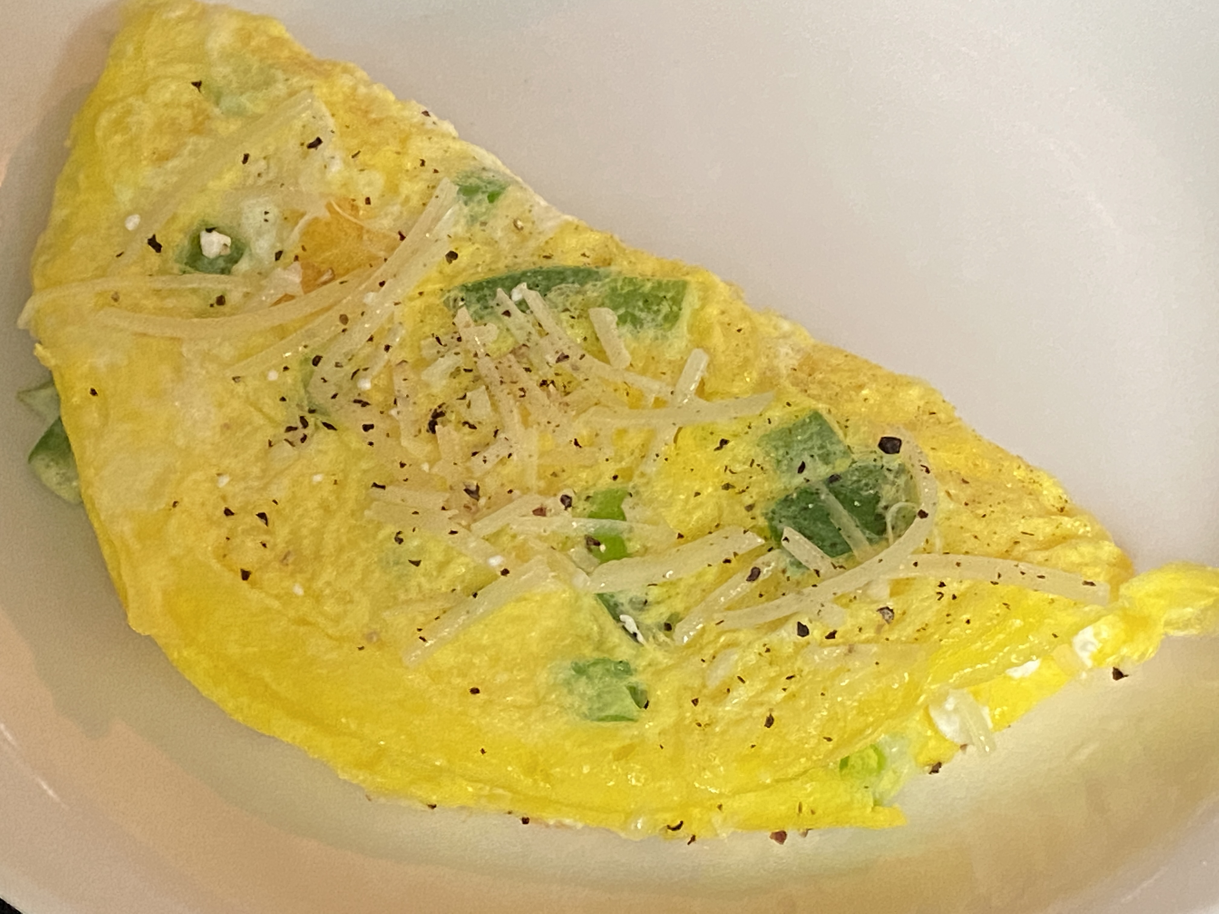 One of the things I like to make are omelettes. Often, I make a 2 egg omelette with some scallions and goat cheese. I really enjoy the creamy goat cheese and also that is about 70 calories per ounce instead of 110+ calories per ounce for cheddar. If you haven’t yet, give goat cheese a try! I also have a piece of fruit and sometimes some sautéed veggies on the side.